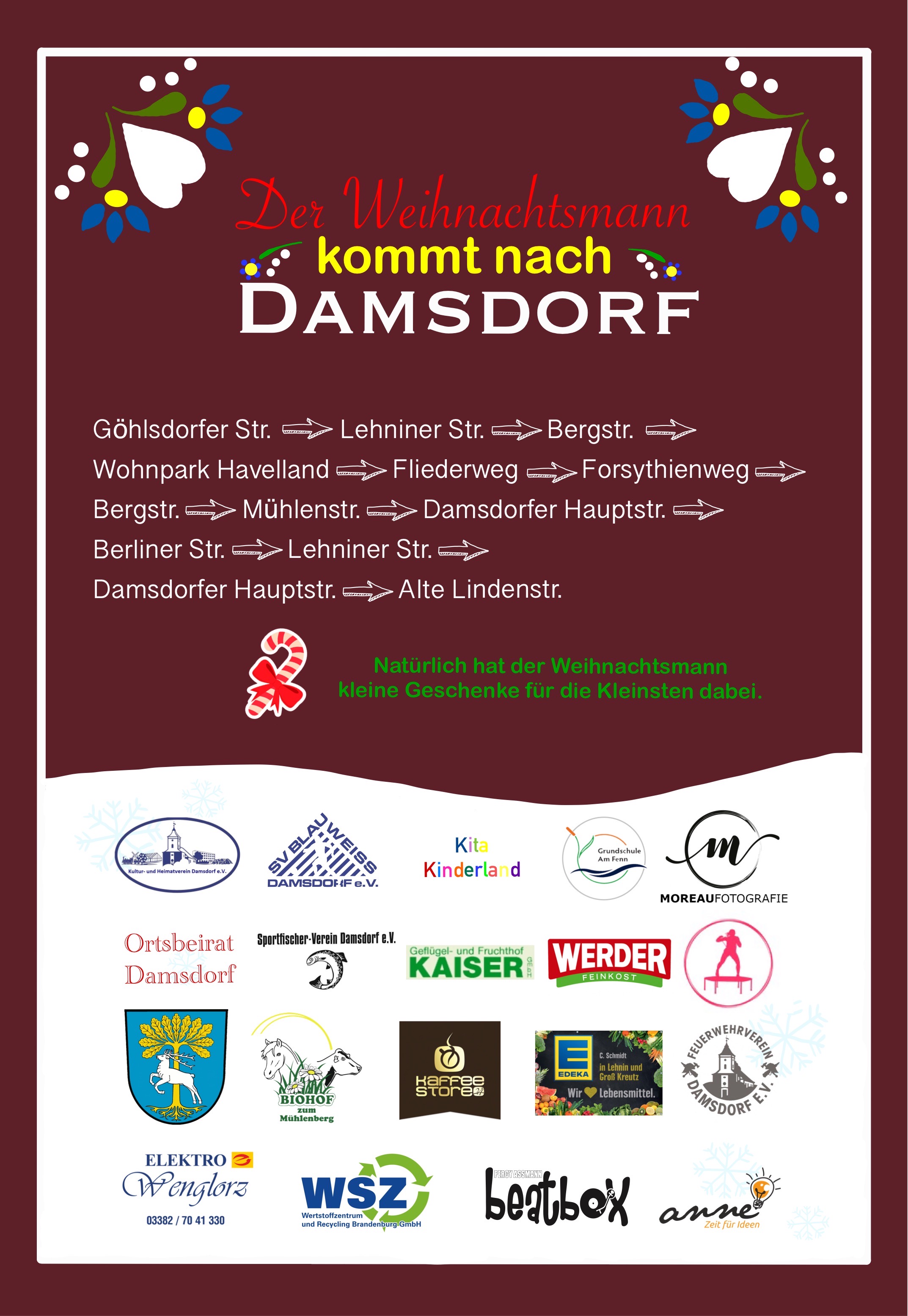 Das Geheimnis ist gelüftet, durch Damsdorf zieht am 18. Dezember der Weihnachtsmann und sein Gefolge.