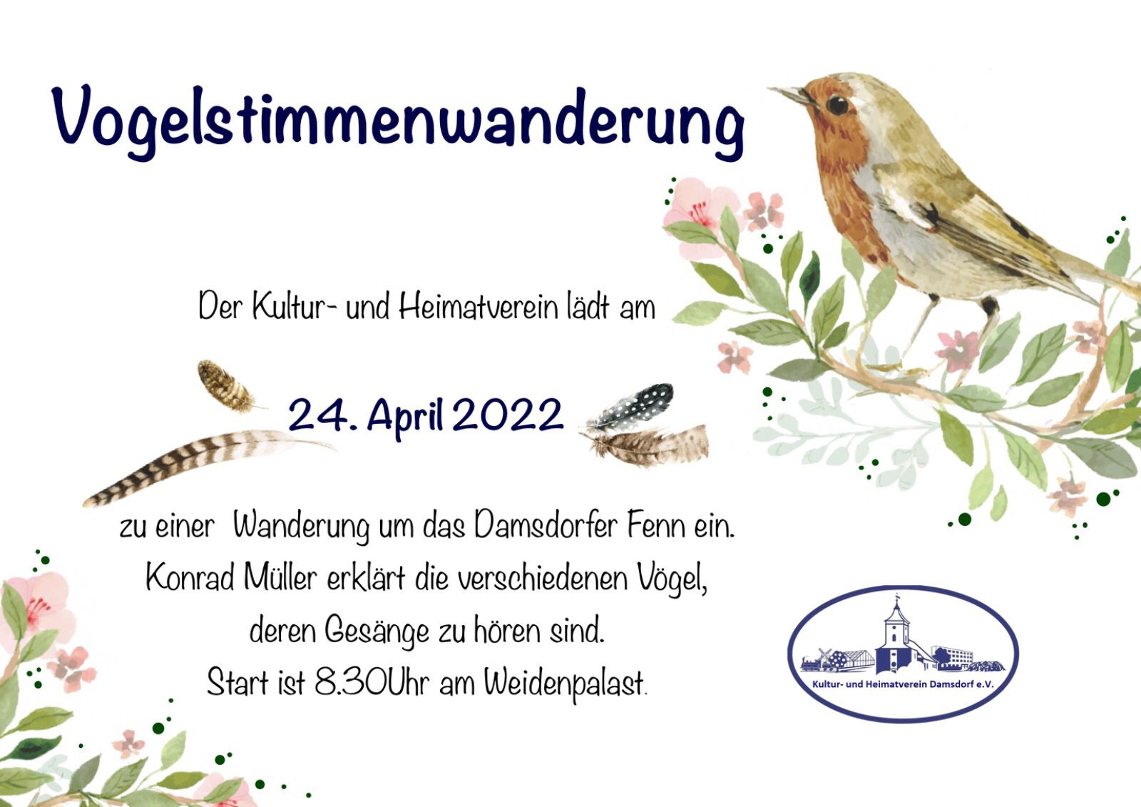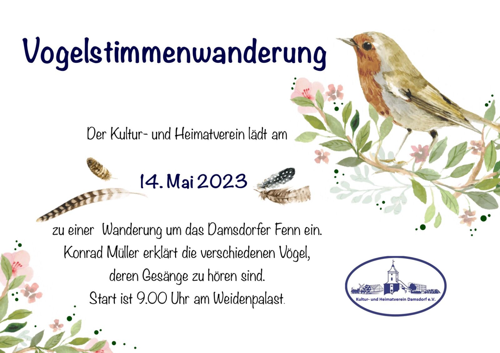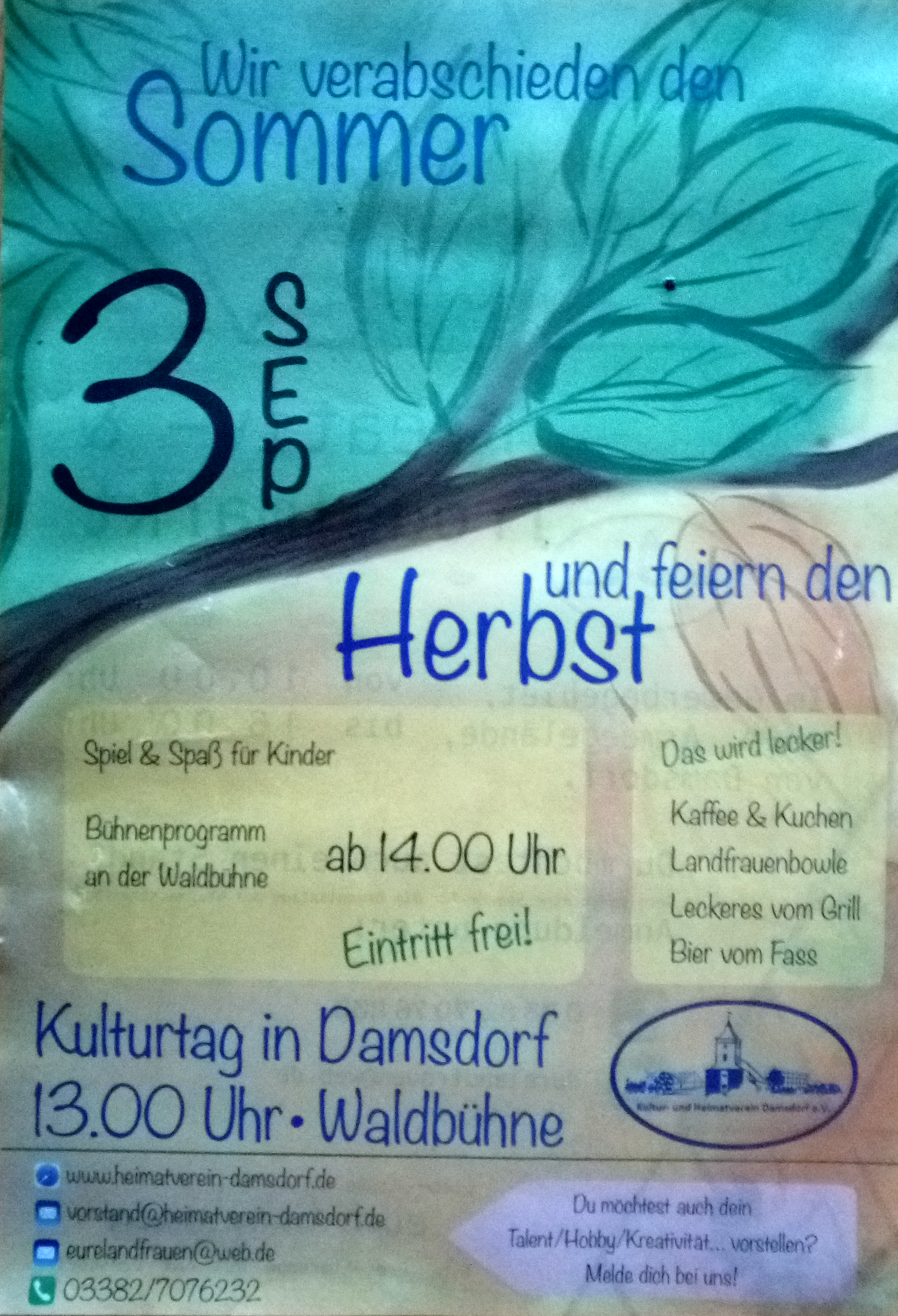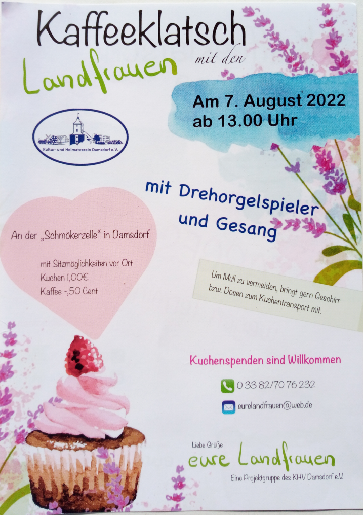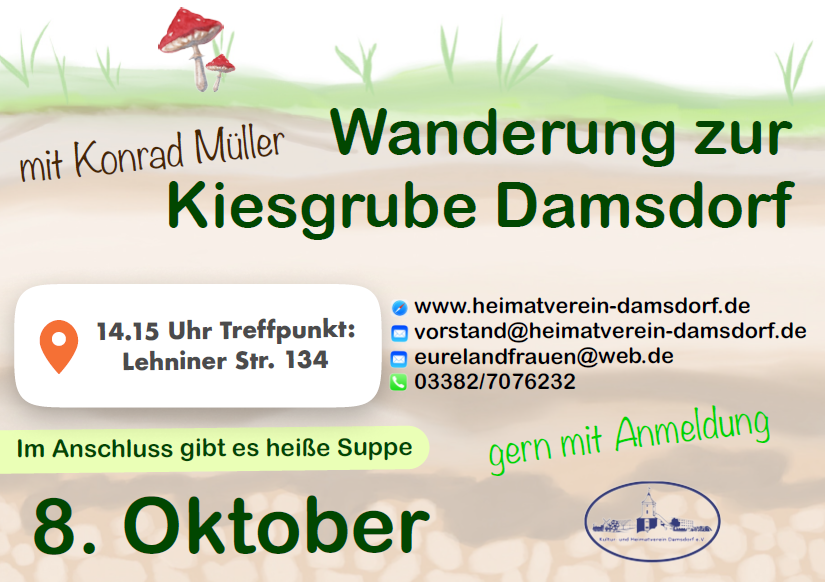 der Kultur- und Heimatverein Damsdorf lädt für Samstag den 7. September ein
