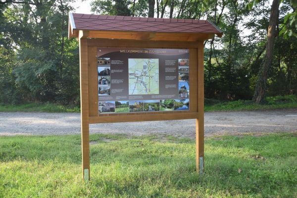 Seit Dienstag hängt sie nun, unsere neue Ortstafel, und damit ist das letzte Mosaiksteinchen dem Infoeck zugefügt worden.